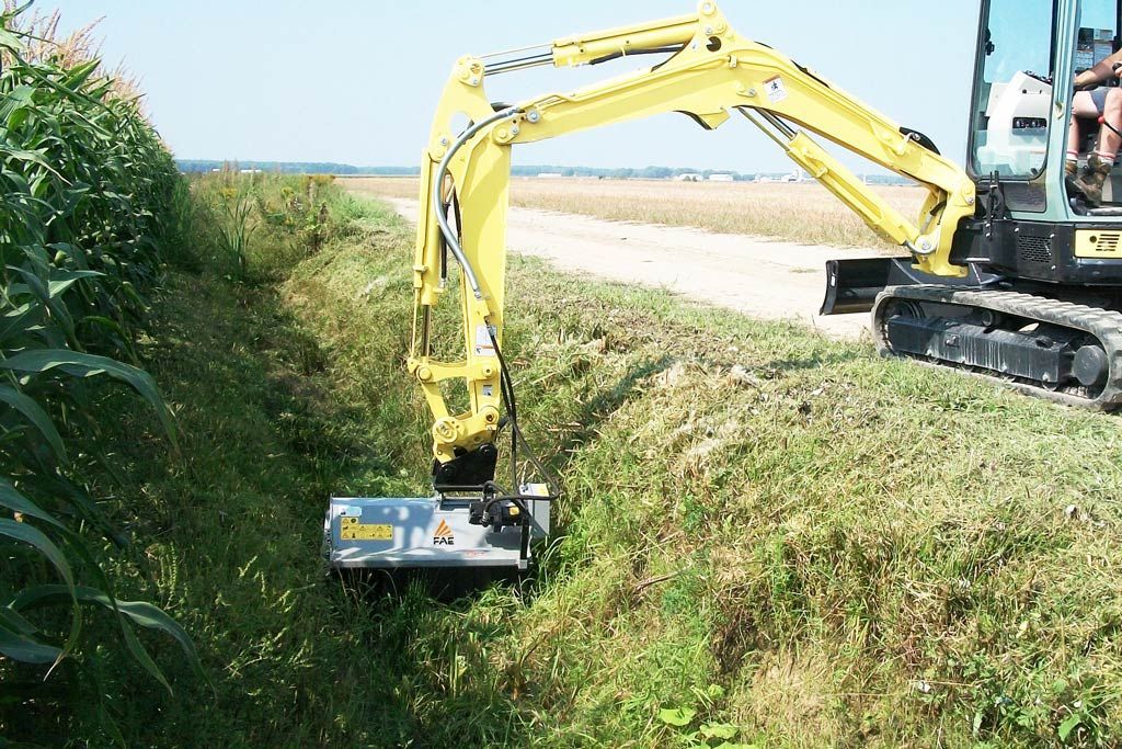 Verschiedene hydraulisch angetriebene Schlegelmulcher von FAE. Wir bieten euch verschiedene Baugrößen, Zwischenadapter sowie Anbauplatten. Für spezielle Trägerfahrzeuge wie Mähausleger individualisieren wir auf Wunsch euren Mulchkopf am Antrieb sowie Aufnahme.